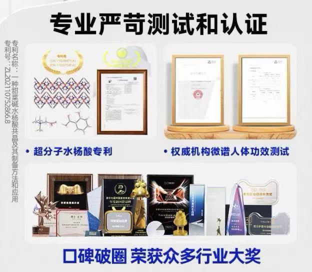 2.水杨酸:属于「角质调理成分」,能溶解毛孔内的油脂栓、疏通堵塞毛孔,还具备一定抗炎作用,是油痘肌洁面的“黄金成分”。但传统水杨酸刺激性较强,如今多采用「超分子水杨酸」「包裹水杨酸」等技术,提升温和度。