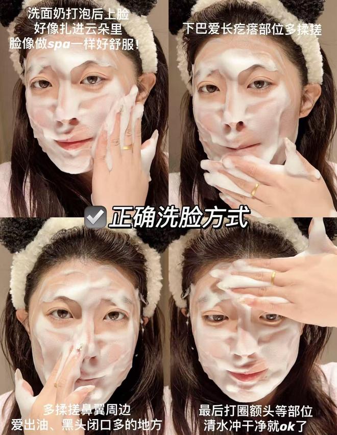 手法:将洗面奶在掌心充分揉搓出泡沫(或使用起泡网),再以打圈方式(从下往上、从内到外)轻柔按摩面部,T区等油脂分泌旺盛部位可稍作停留,眼周则轻轻带过,避免过度摩擦。